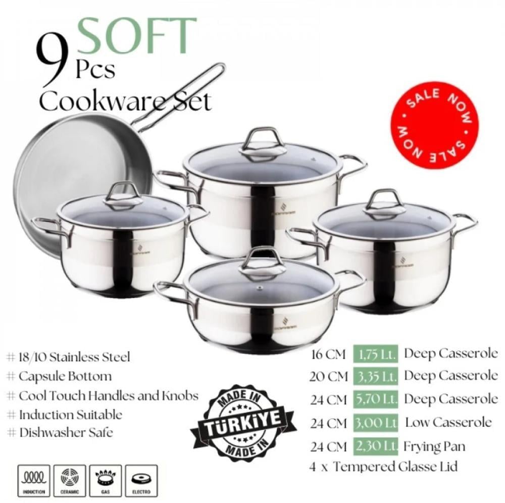 طقم قدور ستيل SOFT تركي 9 قطعة