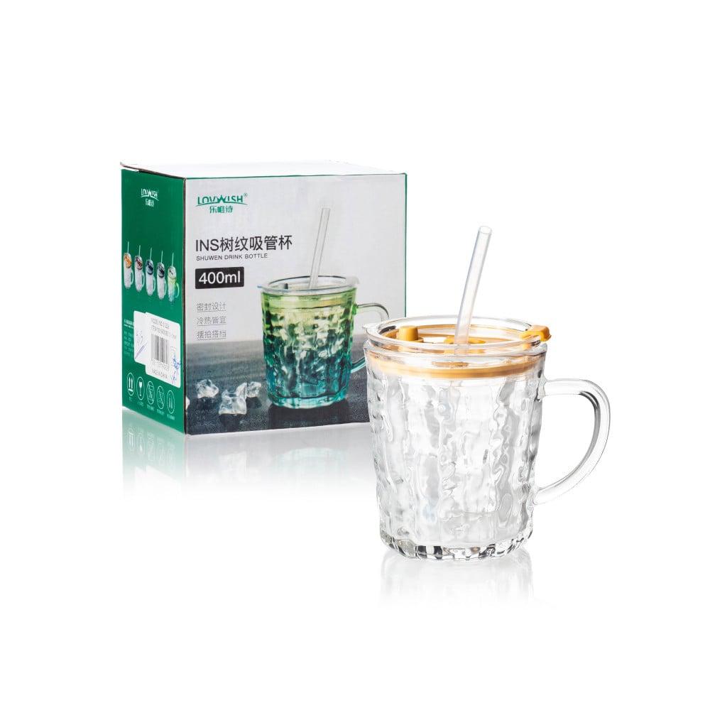 - كوب من الزجاج المحجر مع غطاء من البلاستيك