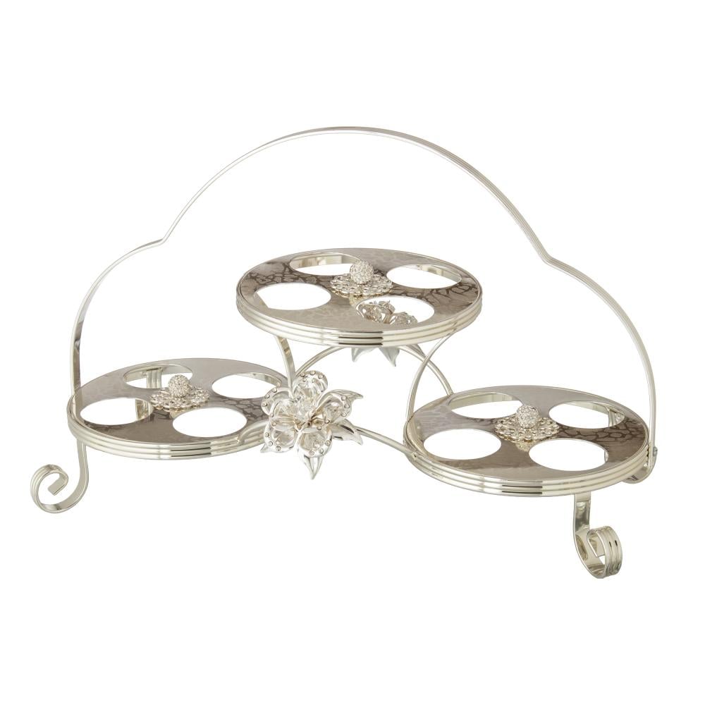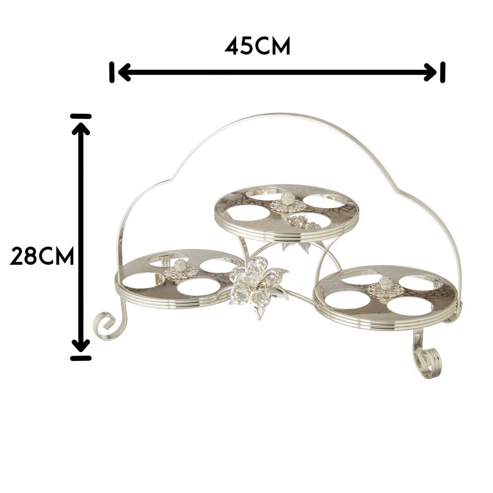 شيالة فناجين قهوة سعودي معدن فضي فاخر مع 12 فنجان قهوة زجاج شفاف