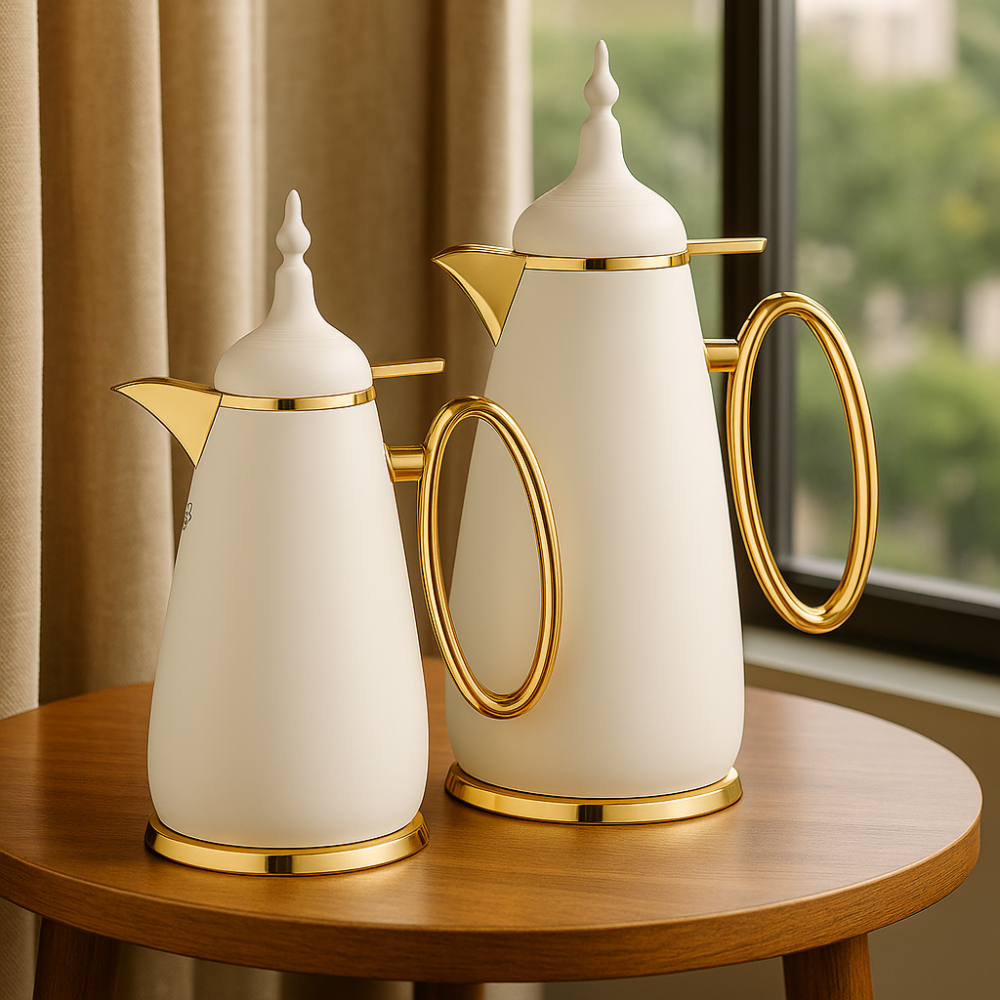 طقم ترامس هتان ابيض ذهبي مطفي 2 قطعة