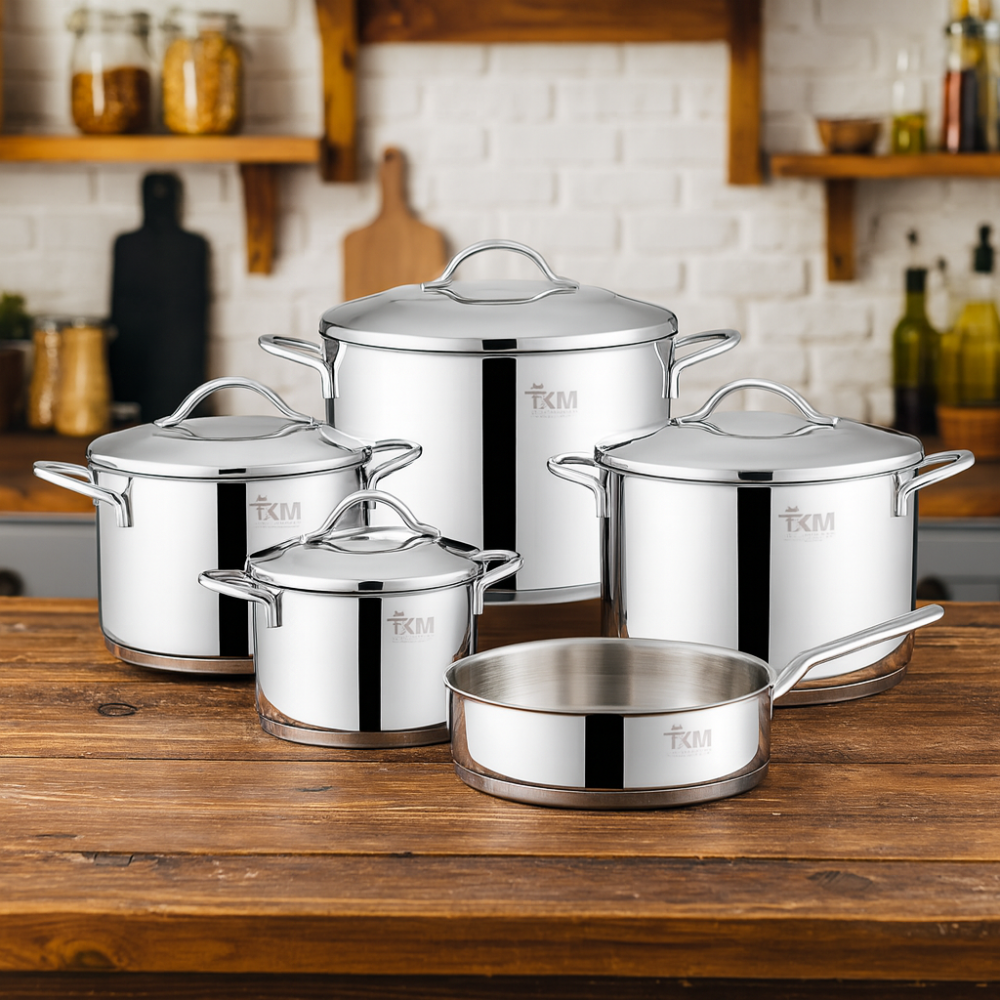 طقم قدور دانية استيل تركي 18/10 استيل لماع 9 قطعة