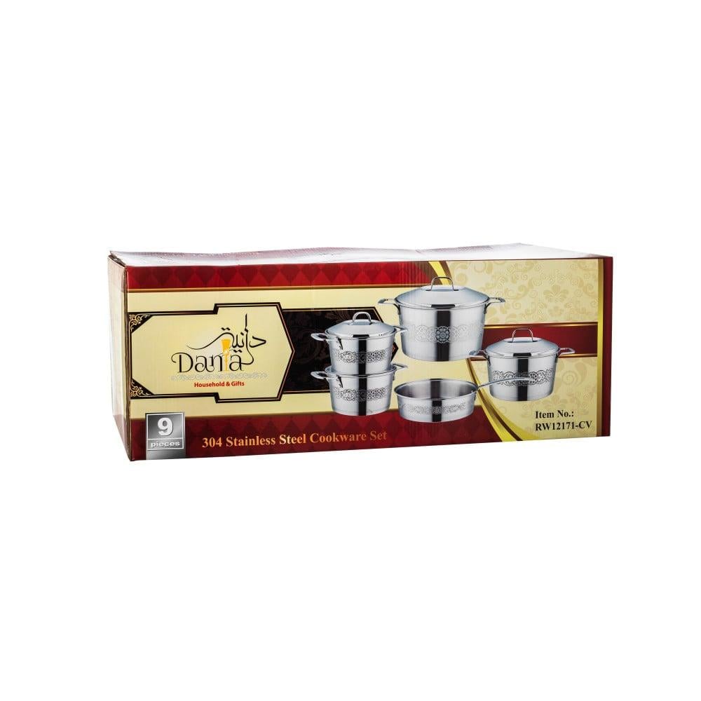 طقم قدور ستيل منقوش 9 قطعة